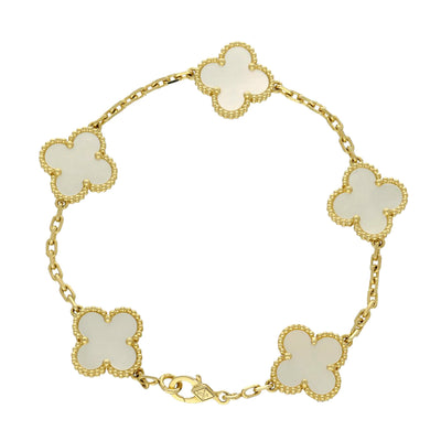 Pre-Loved Van Cleef & Arpels Vintage Alhambra Bracelet, 5 Motifs - 18ct Yellow Gold & Mother of Pearl