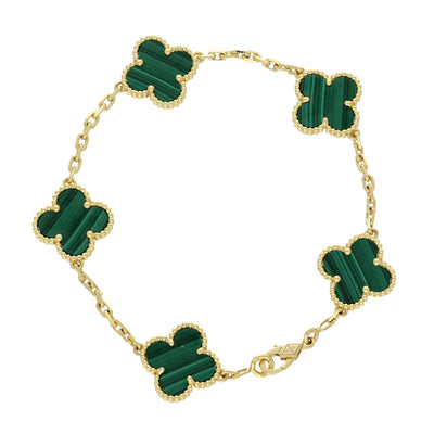 Pre-Loved Van Cleef & Arpels Vintage Alhambra Bracelet, 5 Motifs - 18ct Yellow Gold & Malachite
