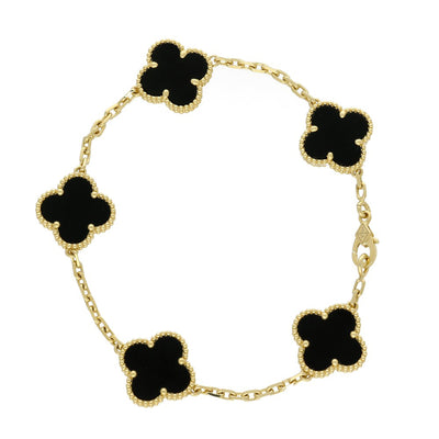 Pre-Loved Van Cleef & Arpels Vintage Alhambra Bracelet, 5 Motifs - 18ct Yellow Gold & Black Onyx