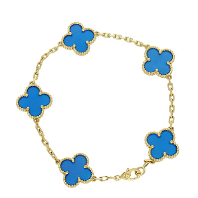 Pre-Loved Van Cleef & Arpels Vintage Alhambra Bracelet, 5 Motifs - 18ct Yellow Gold & Blue Agate