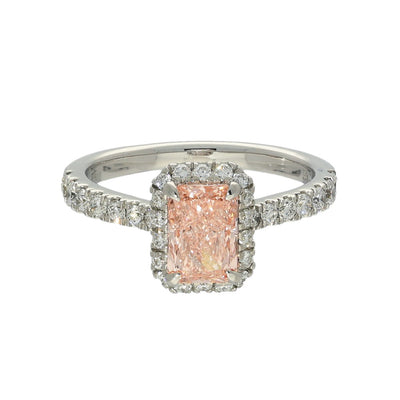 18ct White Gold Laboratory-Grown 1.55ct Pink Radiant Diamond Halo Shoulders Ring