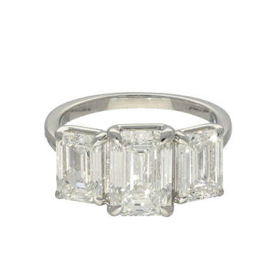 9ct White Gold Laboratory-Grown 5ct Emerald Cut Diamond Trilogy Ring