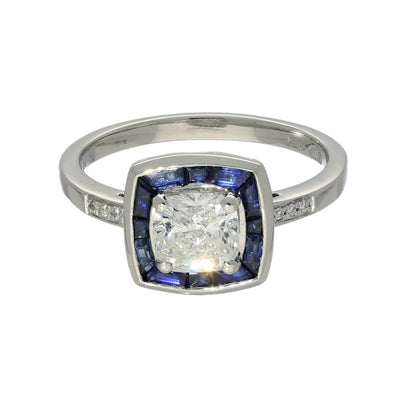 Pre-owned Platinum Certificated Diamond & Sapphire Halo Ring