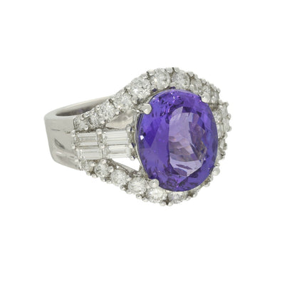 18ct White Gold 8ct Oval Tanzanite & Diamond Cocktail Ring