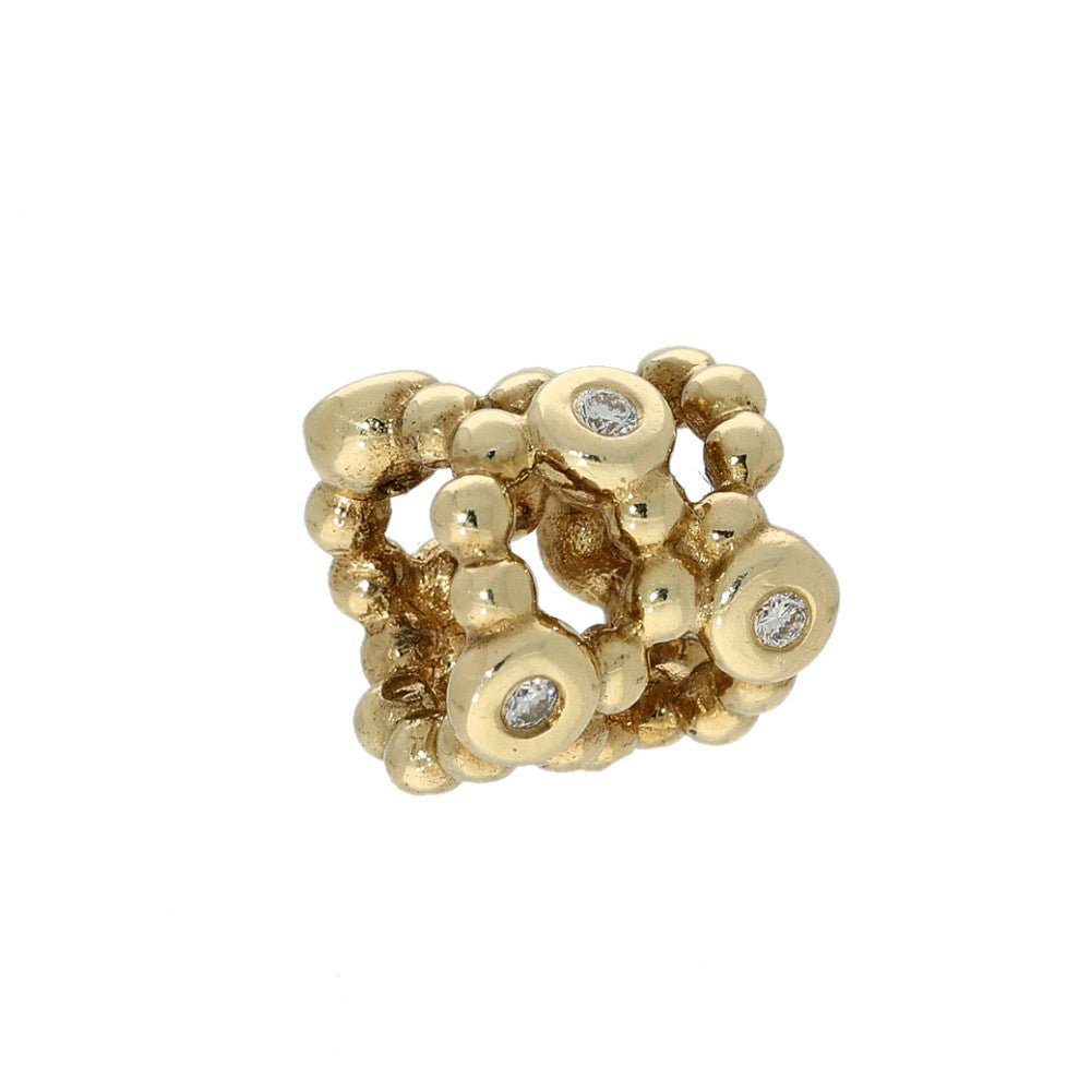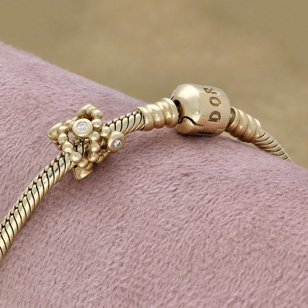 Pandora Jewellery, most known for its beloved silver bead jewellery, have created a luxury range of solid gold jewellery. This beautiful bubble design 14ct yellow gold charm with sparkling gemstones would be a wonderful addition to your Pandora Moments bracelet.
