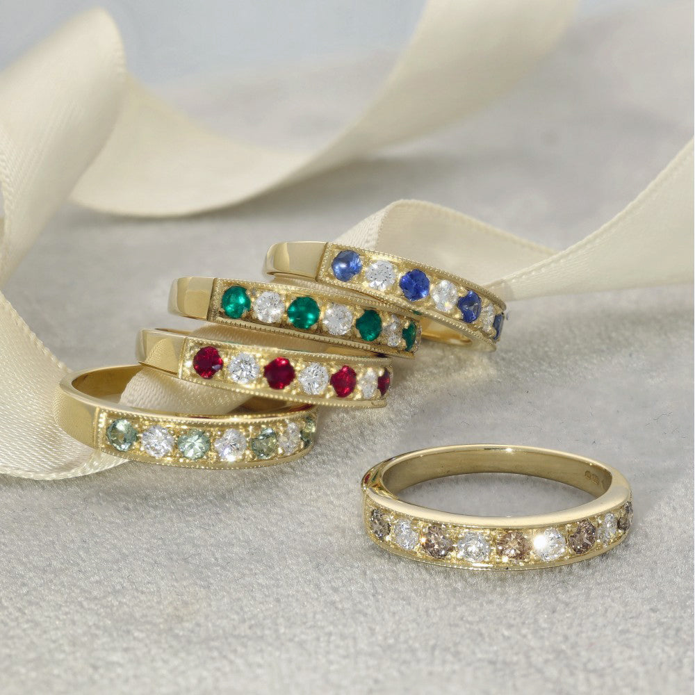 From a plain bands, shaped-to-fit bands and diamond set eternity style rings we can help you design your perfect wedding band