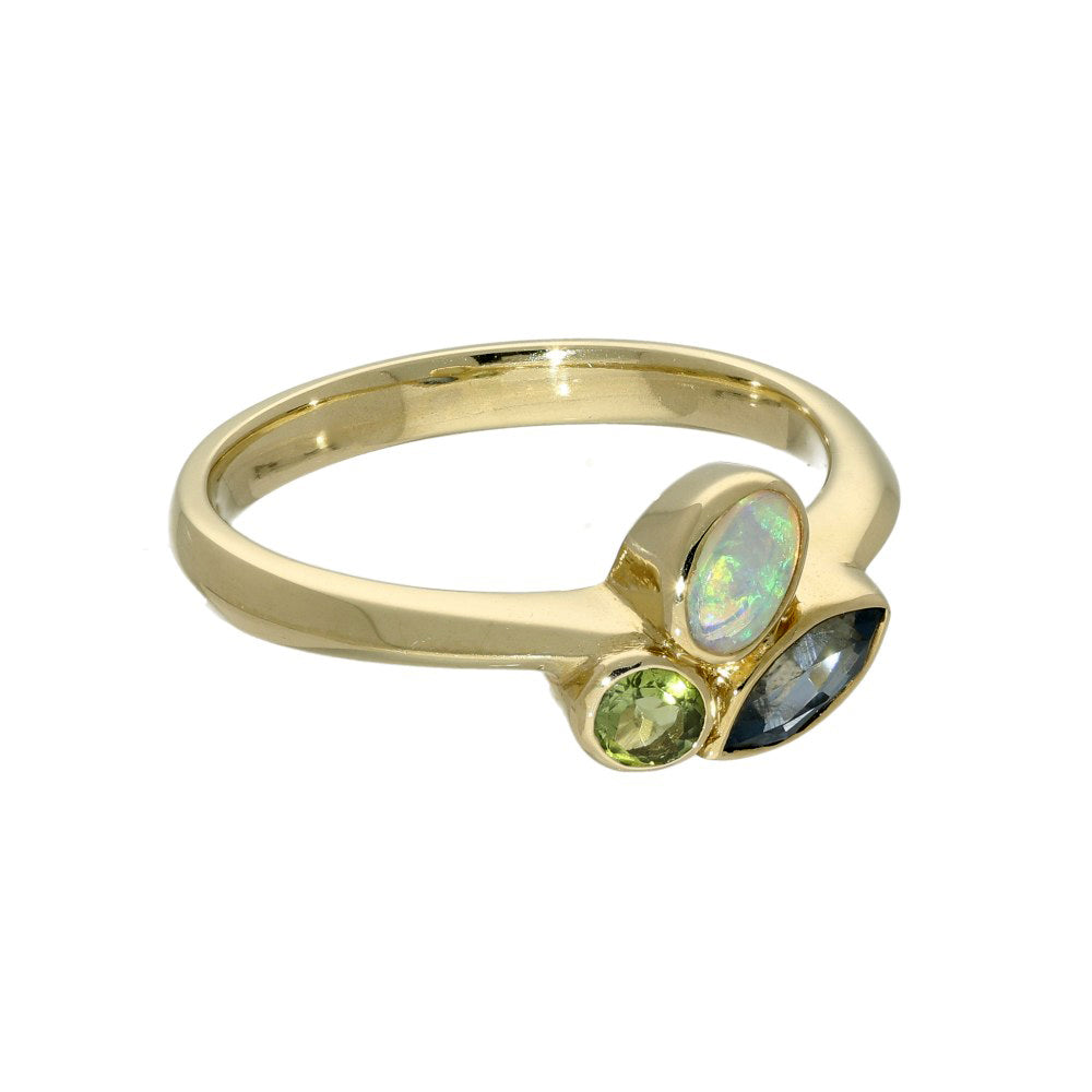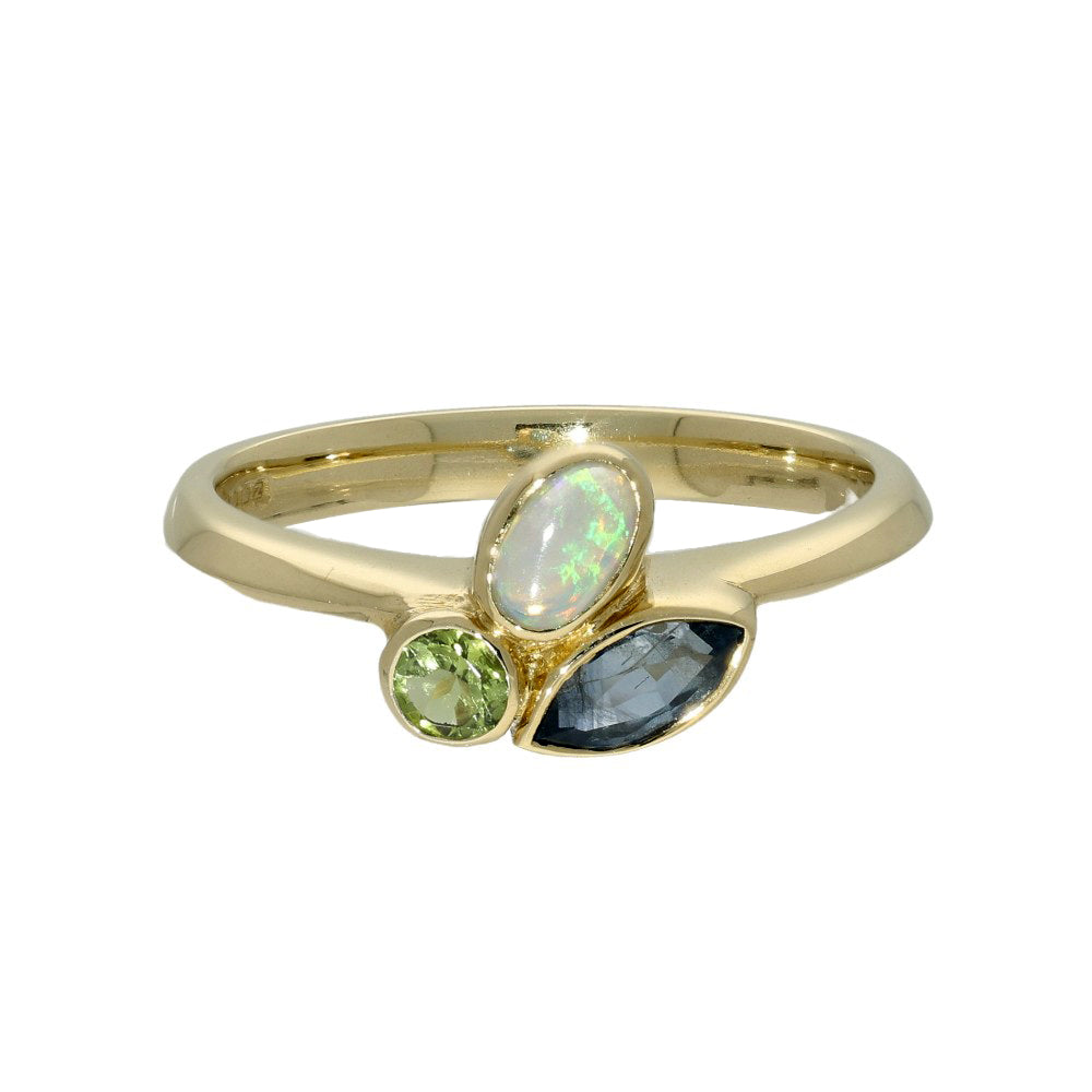 9ct Yellow Gold Sapphire, Opal & Garnet Mix Cut Ring