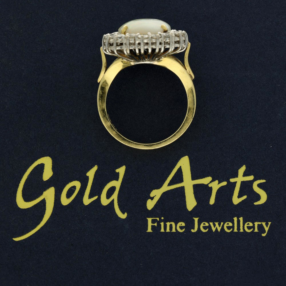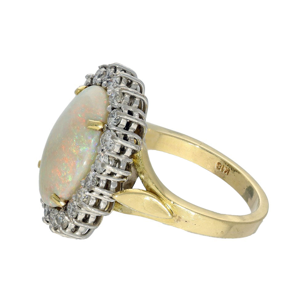 Pre-owned Large 9ct Yellow Gold Opal and Diamond Oval Halo Ring