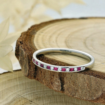 An eternity ring, can really stand out from the crowd, with beautiful coloured gemstones added to the design. The contrast of sapphire and diamond in a white gold eternity ring, or the warmth of ruby and diamond in yellow gold ring works so well in this style.