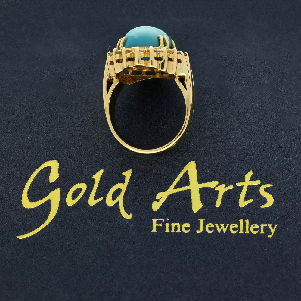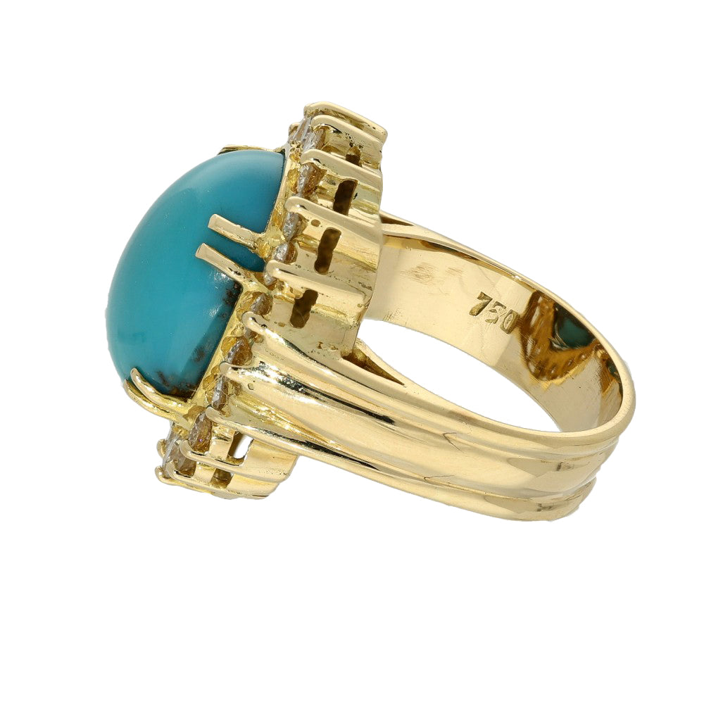 Pre-loved 18ct Yellow Gold Turquoise and Diamond Large Cocktail Ring