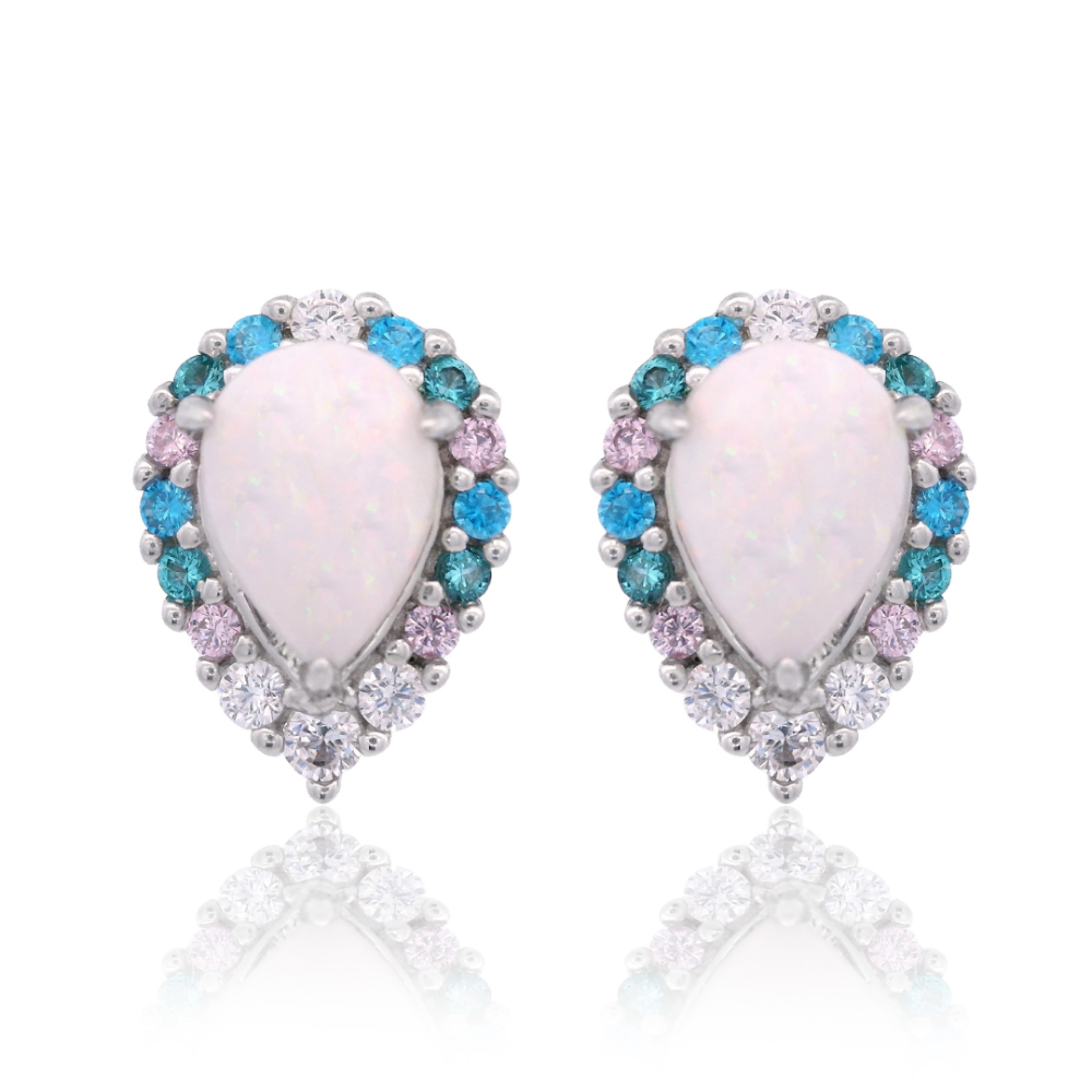 Georgini Wisteria Created Opal Floribunda Earrings Silver IE1174W