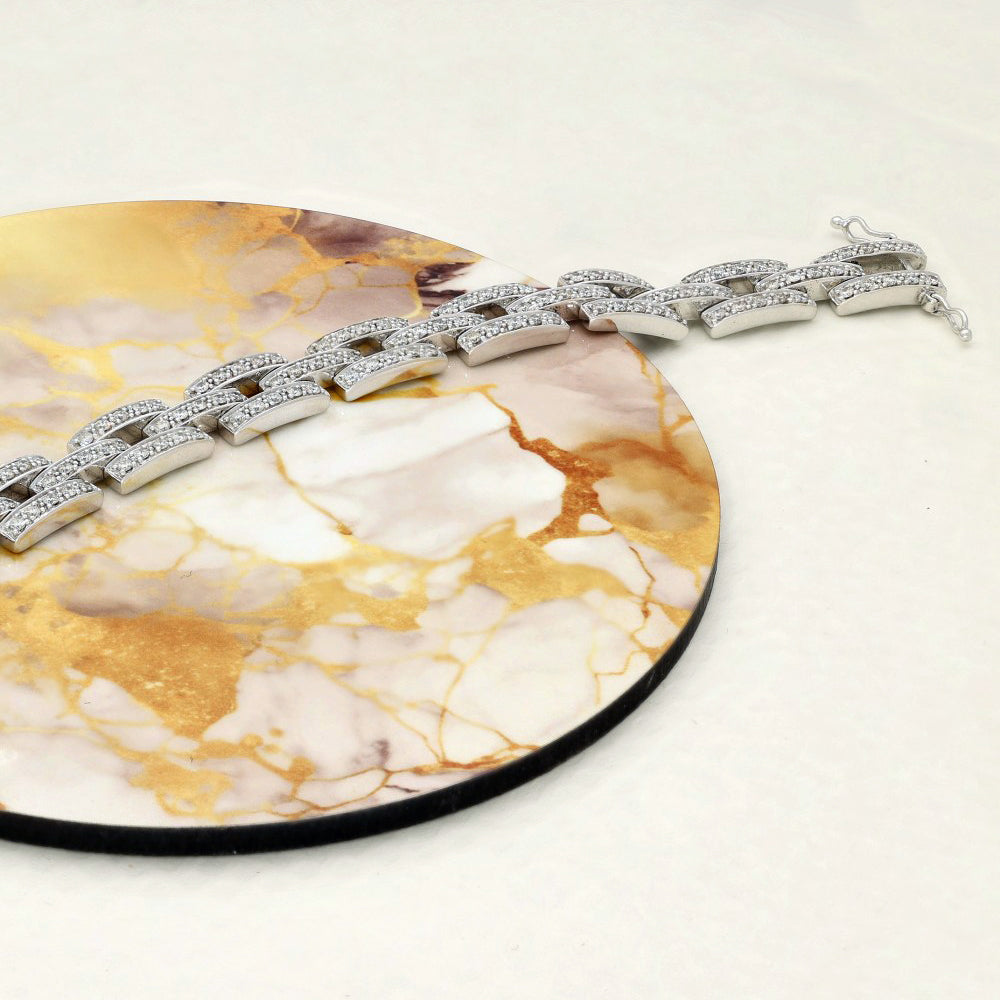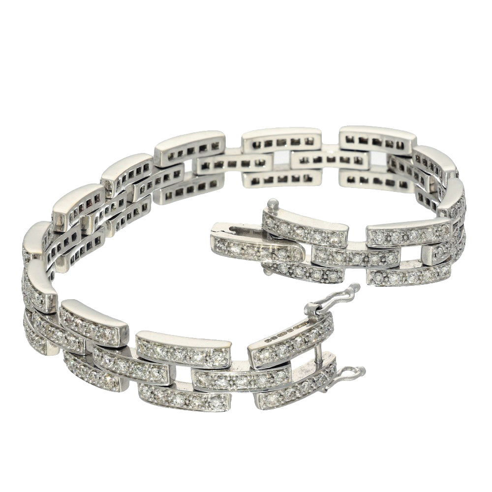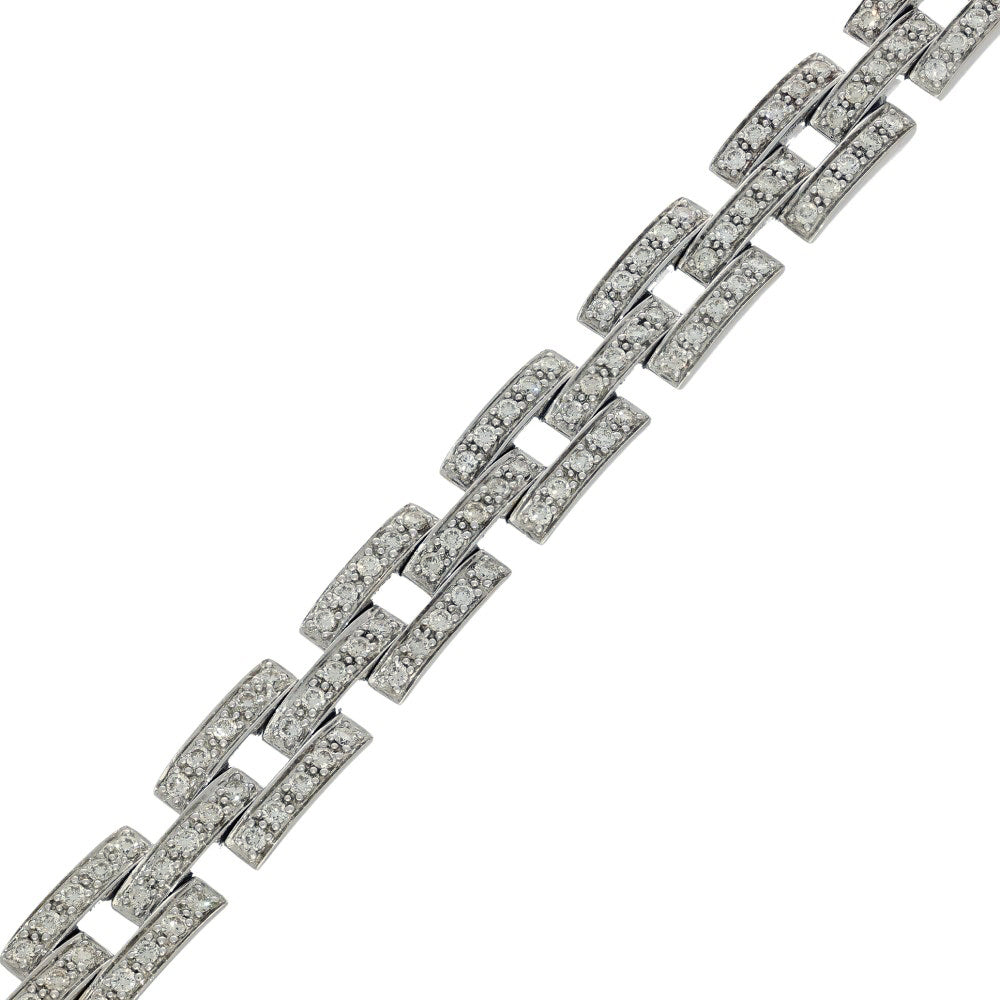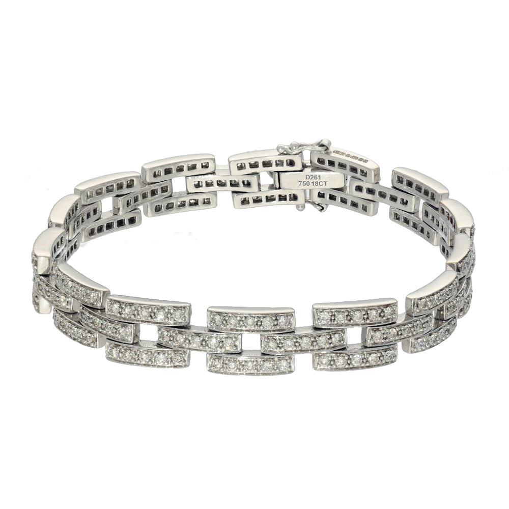 Pre-owned 18ct White Gold Brick Link 2.61ct Pave Diamond Bracelet