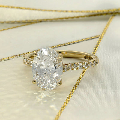 18ct Yellow Gold Laboratory-Grown 3ct Oval Diamond Solitaire Shoulders Ring