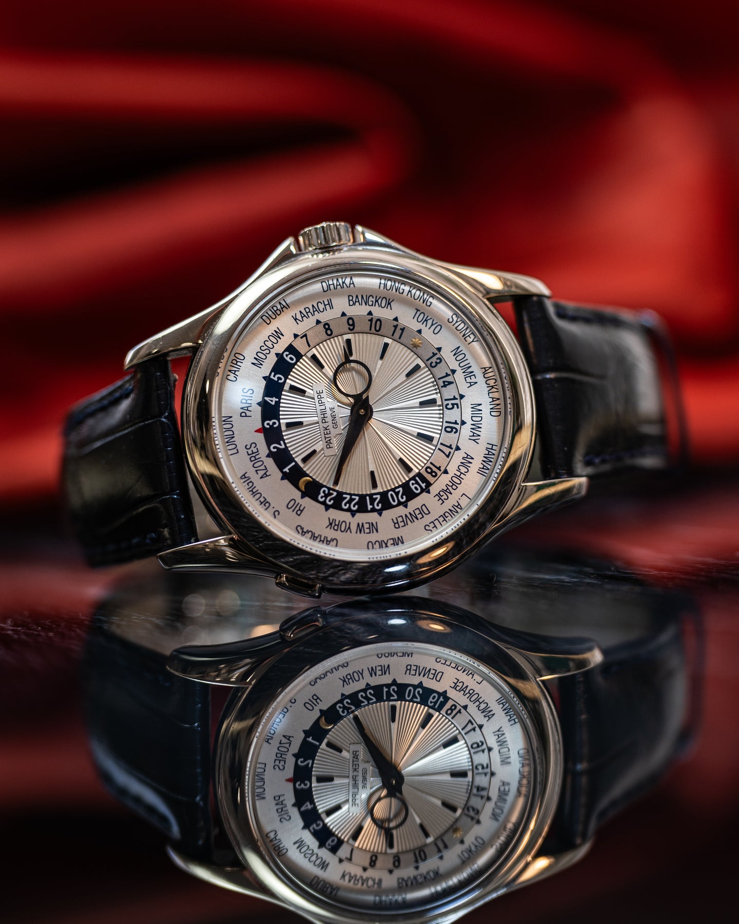 Dial: Silver guilloché centre with city ring for 24 time zones |