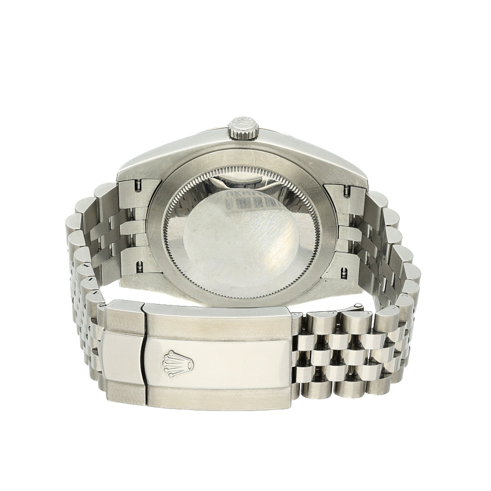 The 41mm Oyster case is crafted from stainless steel and fitted with a Rolex screw‑down crown and sapphire crystal, ensuring everyday durability and practicality. The watch is paired with the elegant stainless steel Jubilee bracelet, known for its comfort and unmistakable Rolex presence on the wrist.