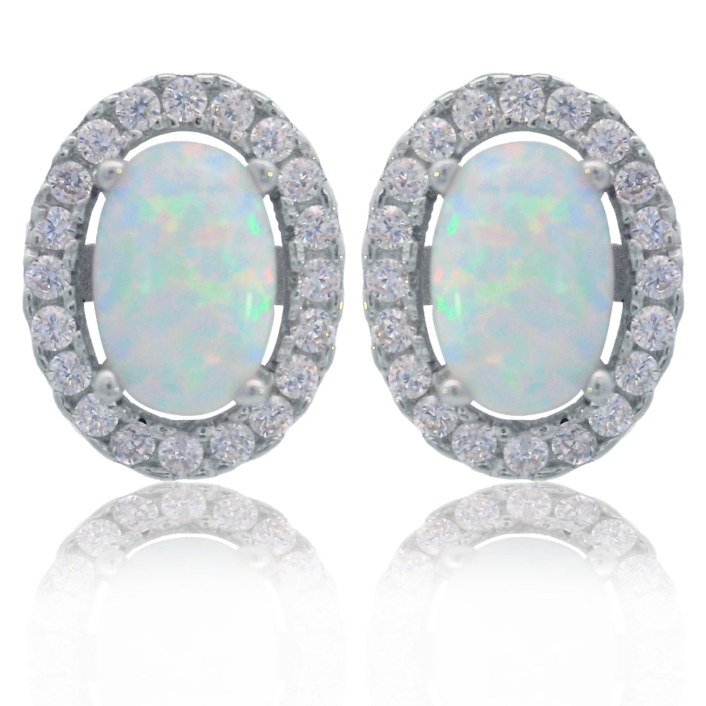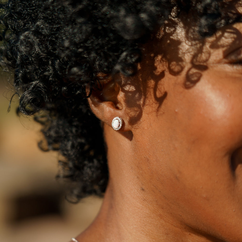 The Blackwattle Earrings from the Opal Glow Collection showcase a captivating oval Created Opal, encircled by a sparkling halo of Cubic Zirconia, creating a timeless and elegant look. Crafted from Rhodium Plated 925 sterling silver, these earrings measure approximately 8mm high by 7mm wide, making them perfect for adding a touch of sophistication to any outfit. Whether worn alone for a subtle pop of shimmer or paired with the matching Blackwattle Pendant for a coordinated, radiant look, these earrings are a stunning choice for any occasion.