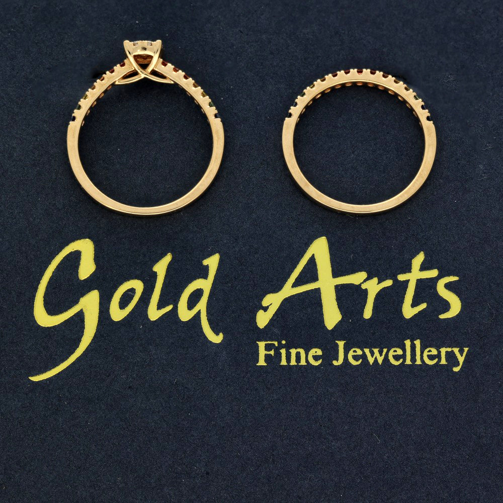 18ct Rose Gold Rainbow Sapphire and Diamond Bridal Ring Set