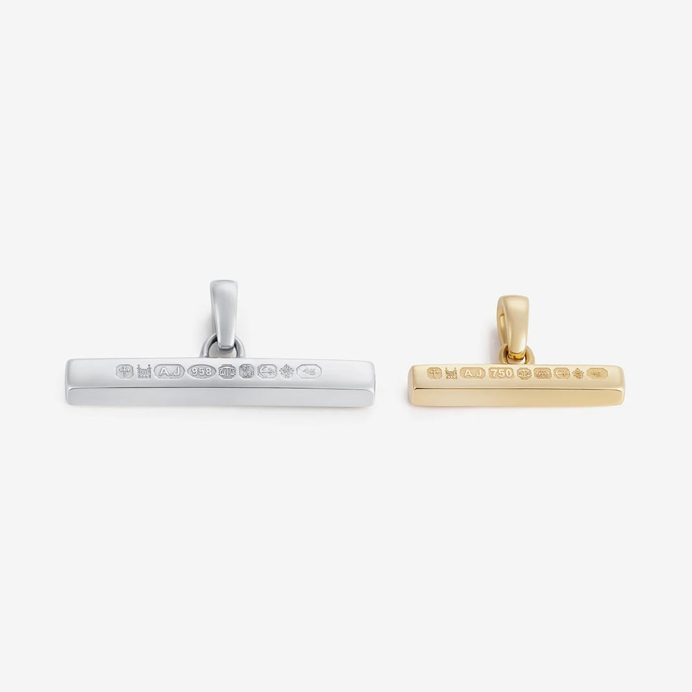 Inspired by the profile of a classic gold bullion bar, the understated T-Bar Pendant design proudly commemorates The Royal Mint’s heritage as the home of precious metals for over 1,100 years. The sophisticated pendant also proudly displays 886 by The Royal Mint’s quintessential Cross Crosslet.