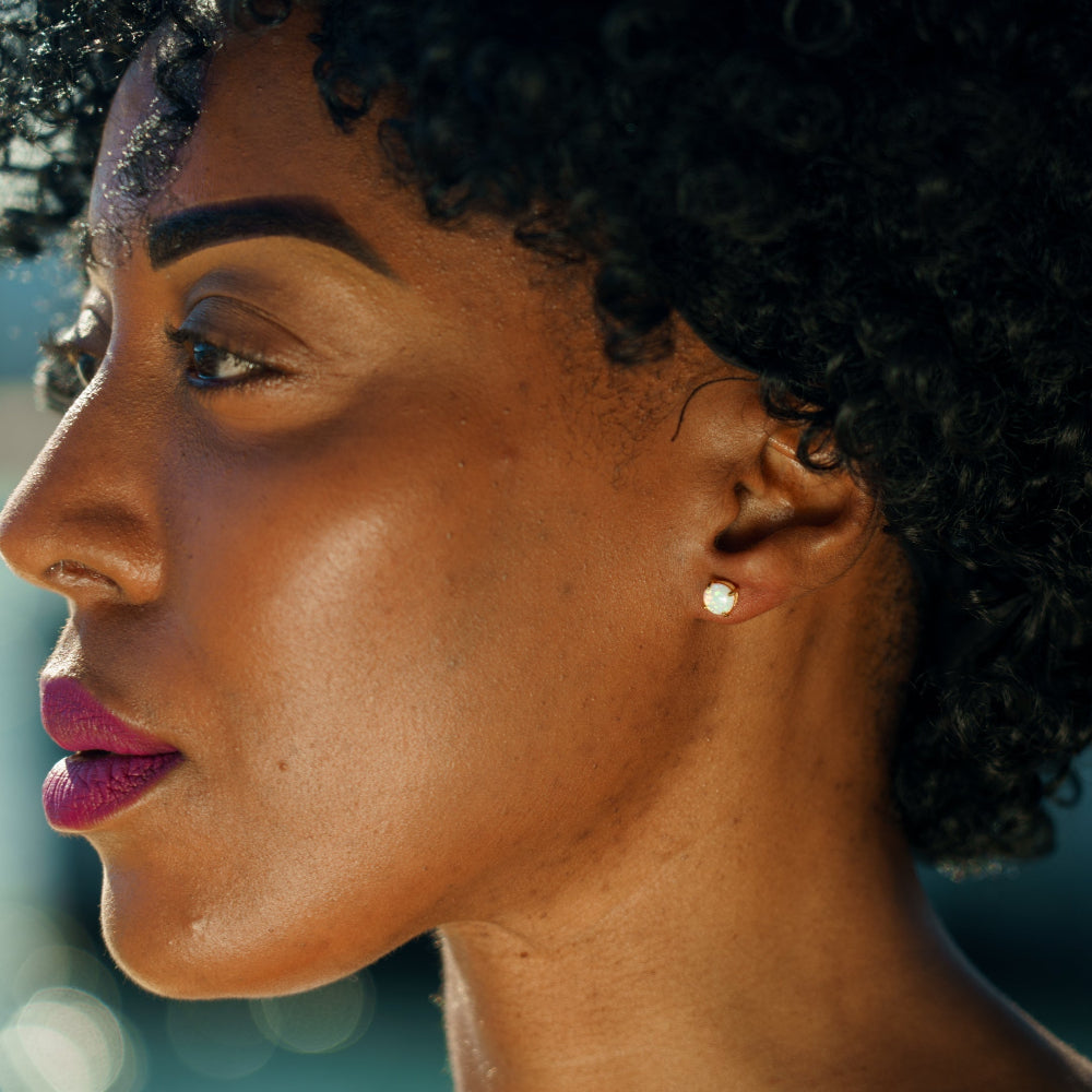 The Georgini Created Opal Stud Earrings are a versatile addition to the Opal Glow Collection. Wear them in your second piercings for a cohesive layered look, or let them shine on their own with a subtle touch of color. These delicate studs measure approximately 5 mm in diameter and are beautifully crafted from 18k gold e-coated 925 sterling silver.