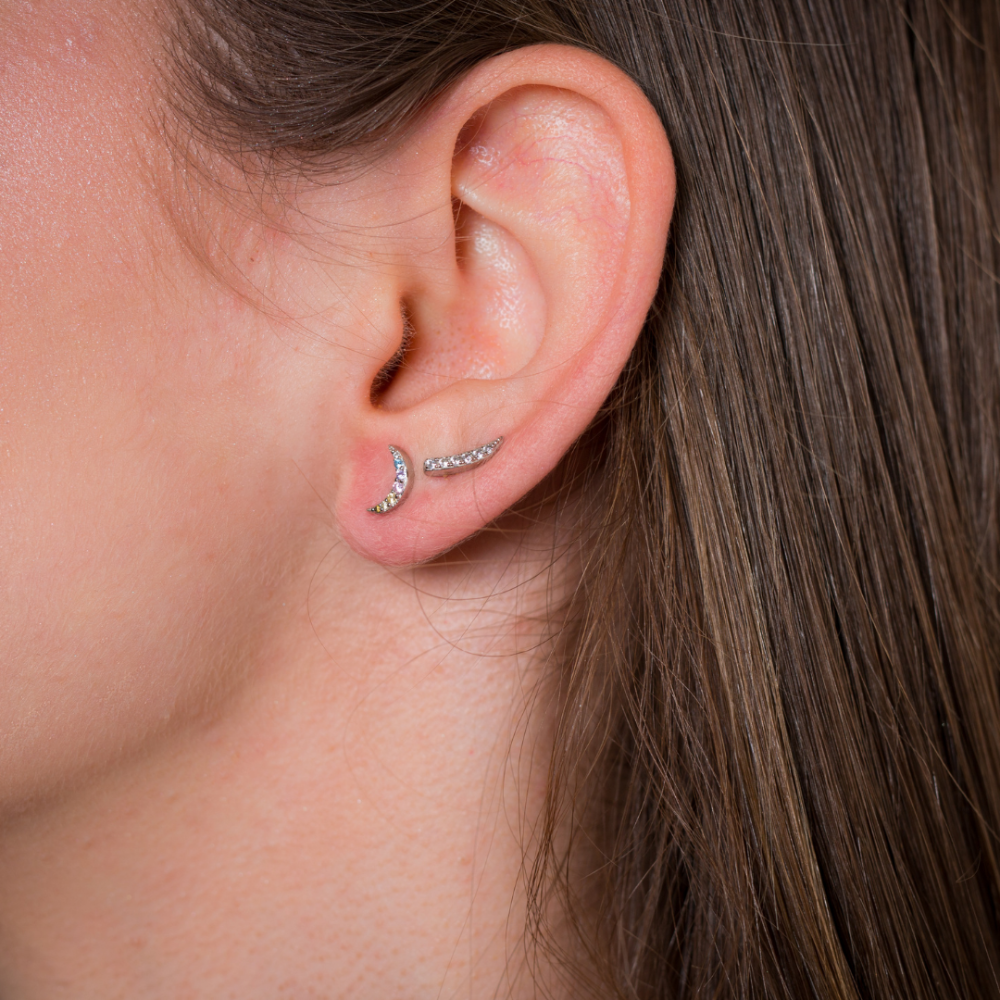 The most precious Star and Moon earrings are here in the Neapolitan Nights Earrings by Georgini. This pastel rainbow palate is designed for the Georgini Girl or those who love a bit of fun! These Earrings are a precious gift and also great for your second and third piercing's. Made from Rhodium plated 925 Sterling Silver they are perfect for little ears with the moon measuring approximately 8.55mm high and the star 7.52mm high.