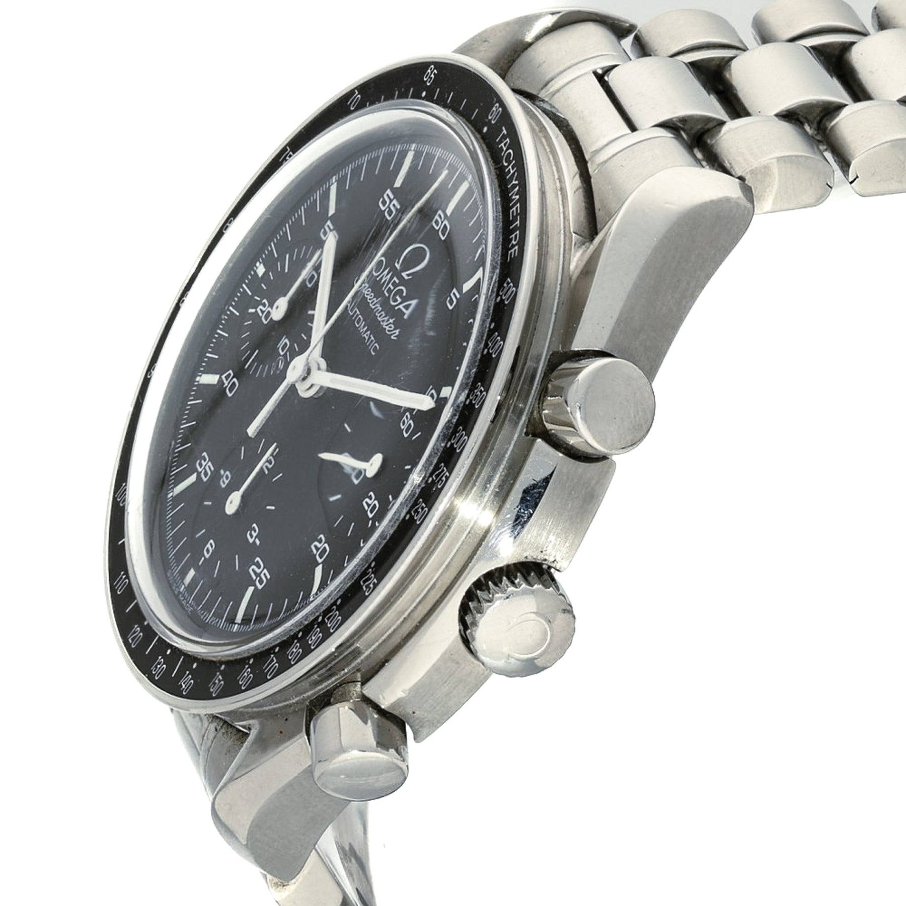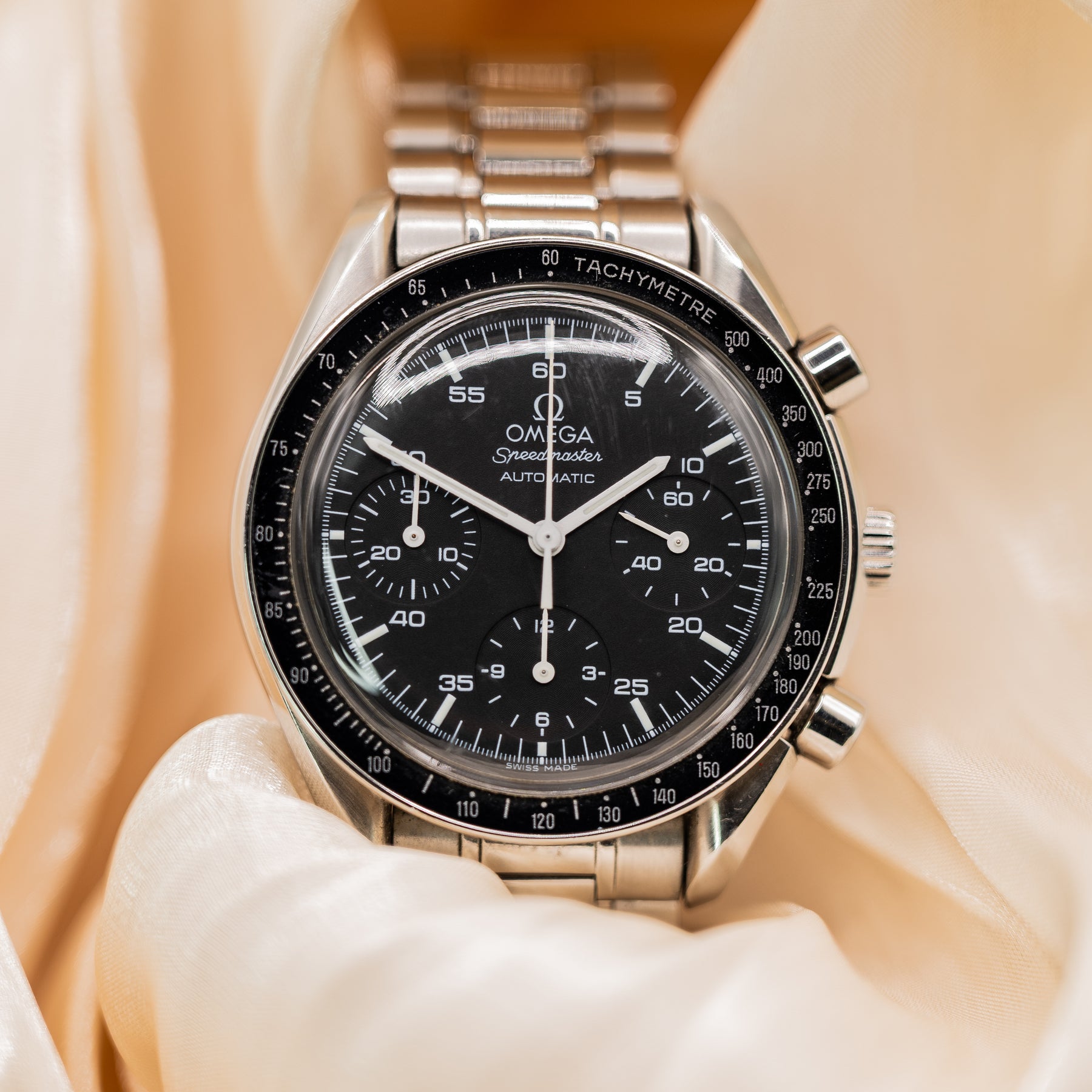 Inside, Omega’s Calibre 3220 brings “set‑and‑forget” convenience: an ETA‑based automatic with a Dubois‑Dépraz chronograph module for crisp actuation, 4 Hz reliability, and a ~40–42‑hour reserve. It’s the practical Speedmaster you can wear daily—30 m water resistance, robust steel case, and easy strap changes thanks to the 18 mm lugs. No wonder this discontinued series (1988–2010) has built a cult following among enthusiasts who want the Speedy look with everyday ease.