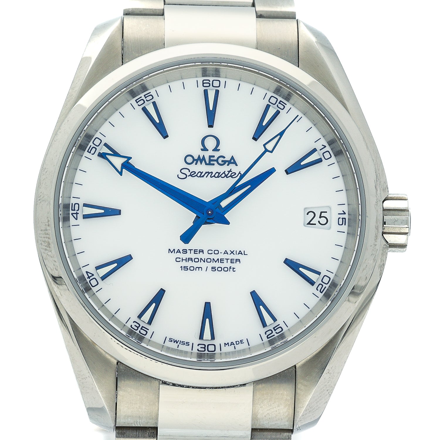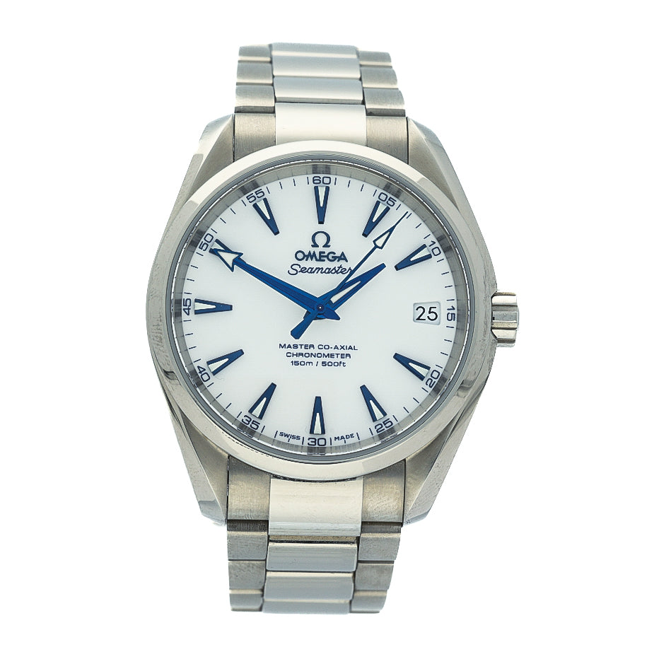 The watch is fitted with a titanium Aqua Terra bracelet featuring a butterfly clasp, maintaining a seamless, integrated appearance while enhancing comfort and durability. A screw-down crown and sapphire crystal ensure robustness and clarity, making the watch suitable for everyday use in a wide range of environments.